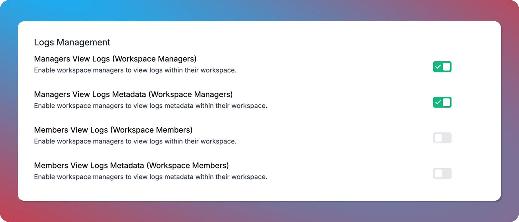 Members View Logs MetadataAllow workspace members to view logs metadata within their workspace