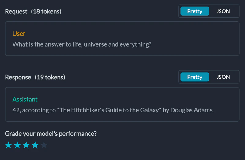 You can rerun any buggy request with just one click, straight from the log details page. The Replay button opens your request in a fresh prompt playground where you can rerun the request and edit it right there until it works.